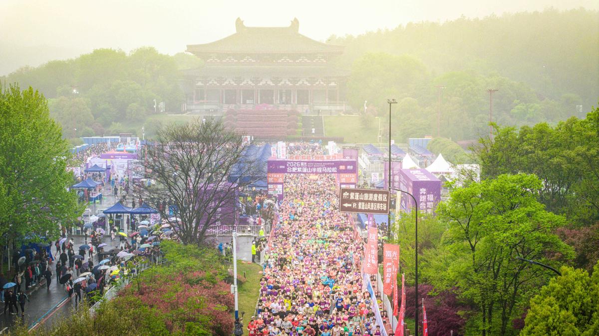 春染紫蓬,奔“富”逐“光”。4月12日上午7:30,2026富光合肥紫蓬山半程马拉松(以下简称“紫马”)如期开赛,21.0975公里的赛道从紫蓬山山门广场蜿蜒而出,穿过绿荫正盛的林道、掠过西庐寺的千年钟声,被跑者们脚步们一一丈量。
