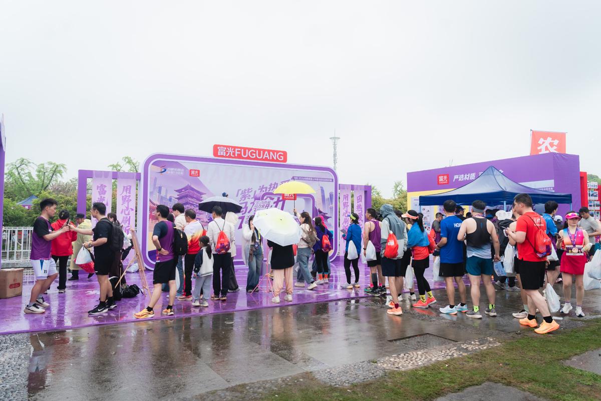 完赛之后,富光品牌展位成赛场超火打卡地,现场人气爆棚!整个展台以紫马的标志性紫色为主色调,与紫蓬山的春日山野相映成趣,紫蓬山国家森林公园的山门剪影跃然其上,古朴与热血在此刻奇妙交融。