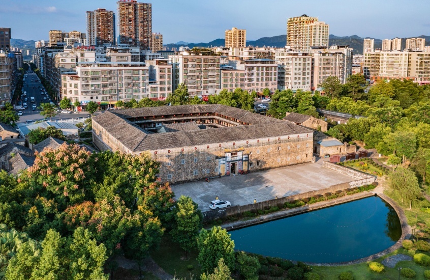 泰安楼客家文化旅游产业园位于梅州市大埔县城西部,规划面积2680亩,该旅游产业园以全国重点文物保护单位泰安楼为核心区,以“泰安楼—西湖公园—大埔县文体活动中心—旅游服务中心”为景观轴,融入客家文化元素,具有“一园三城”的景观,是集观光旅游、文化体验、休闲度假于一体的旅游景区。泰安楼始建于清乾隆二十八年(1764年),已有260多年的历史,是中国少见的石方楼,被誉为“客家的水立方”;是历史人文博物馆、省级重点文物保护单位、全国重点文物保护单位。孩子们可以欣赏到古老的砖石木结构建筑,了解古人的建筑智慧,感受建筑的历史韵味。